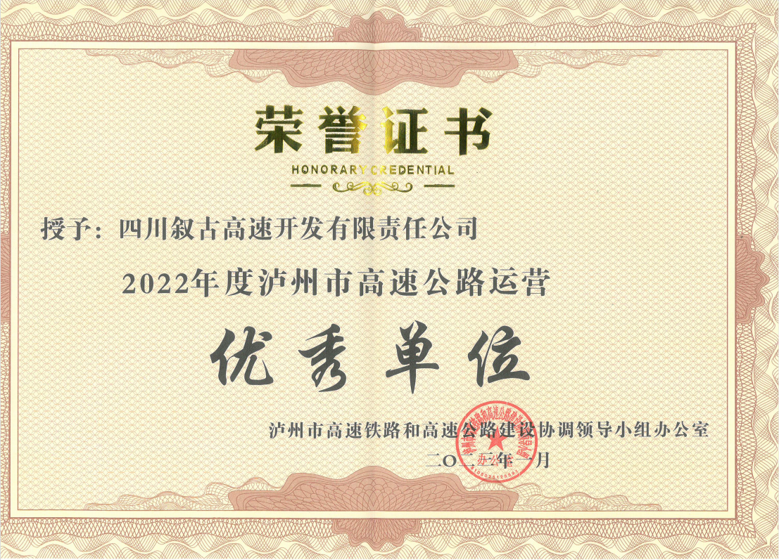 喜訊!敘古、川黔公司榮獲瀘州市高速公路優(yōu)秀單位表彰